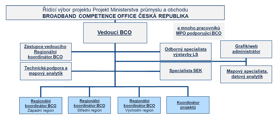 Struktura BCO je tvořena centrálou a územními koordinátory. Spolupráci s projektem lze navázat prostřednictvím webových stránek www.bconetwork.cz, potřebné kontakty jsou uvedeny i na facebookovém profilu Broadband Competence Office ČR.