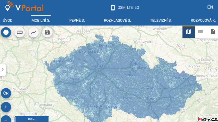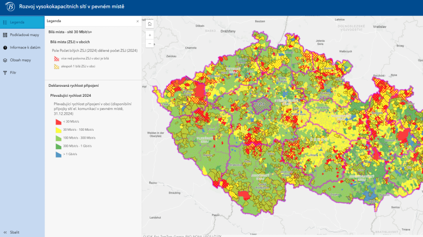Přehled map a geoportálů pro telekomunikace