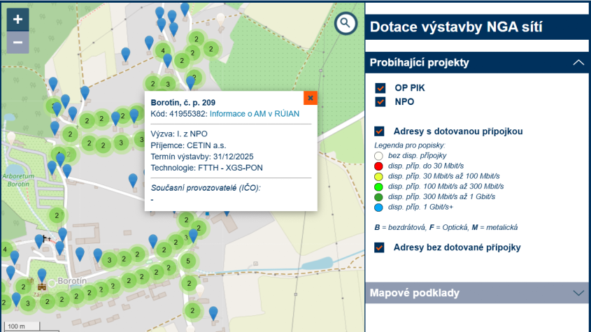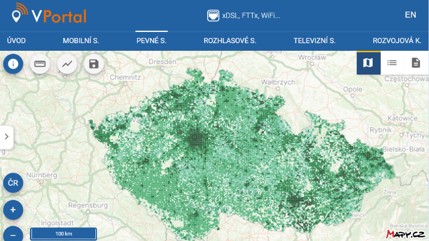 Přehled map a geoportálů pro telekomunikace